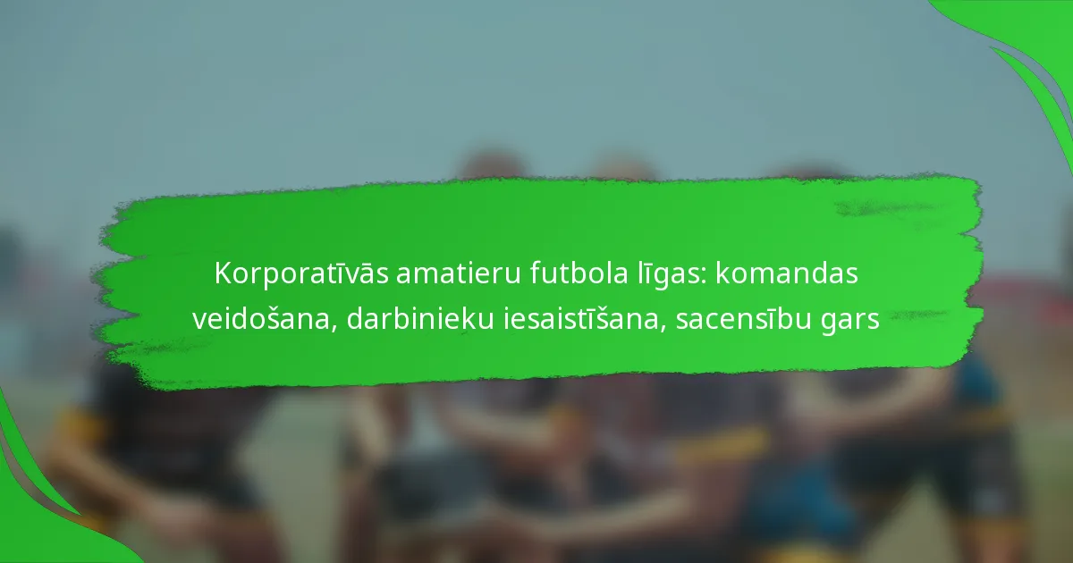 Korporatīvās amatieru futbola līgas ir organizētas sporta sacensības, kur darbinieki no dažādām kompānijām veido komandas, lai sacenstos futbolā. Šo līgu mērķis ir uzlabot komandas veidošanu, darbinieku iesaisti un veicināt konkurences garu starp dalībniekiem.