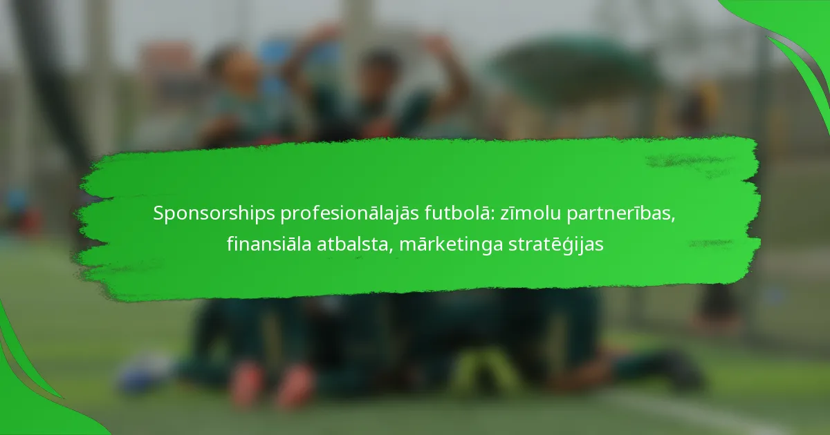 Sponsorships profesionālajās futbolā ir būtiska sastāvdaļa, kas veicina zīmola redzamību un finansiālo atbalstu komandām. Šīs partnerības, kas var ietvert krekla sponsorēšanu un stadiona nosaukuma tiesības, rada unikālas mārketinga iespējas, vienlaikus nodrošinot būtiskus ieņēmumu avotus, kas veicina klubu un līgu kopējo panākumu un ilgtspēju.