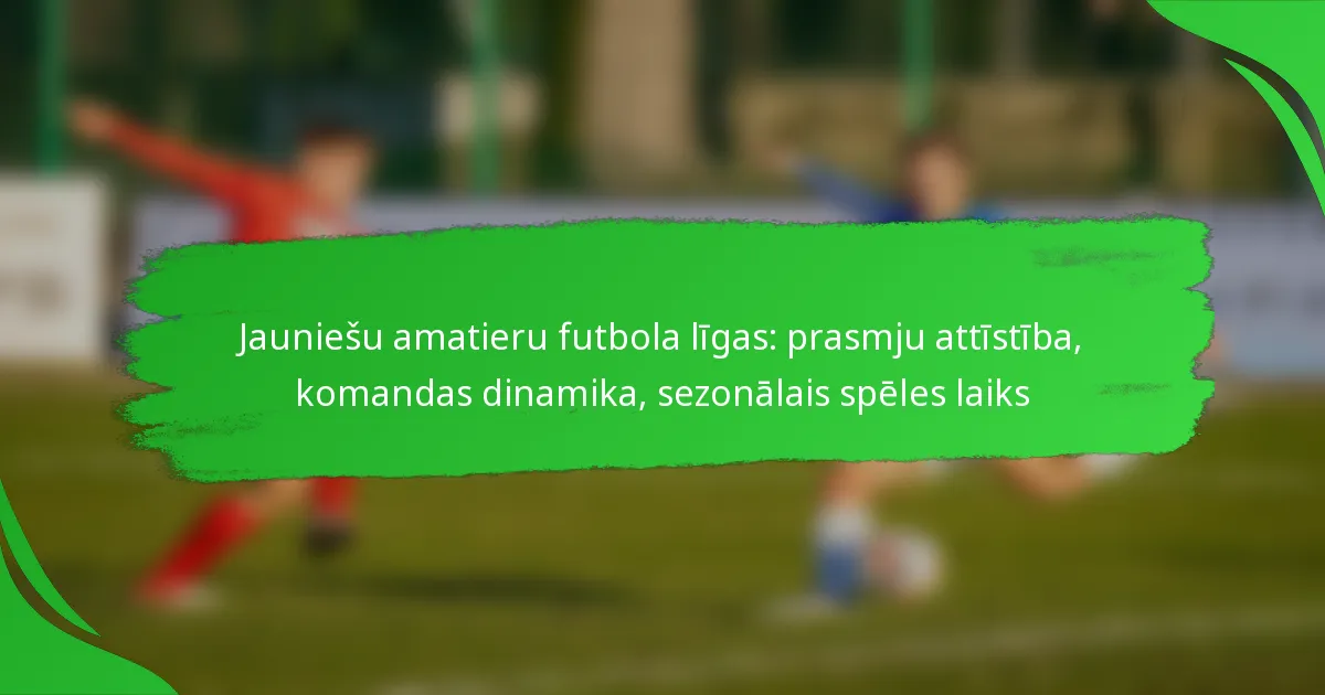 Jauniešu amatieru futbola līgas ir būtiskas, lai attīstītu svarīgas prasmes jaunajiem sportistiem, tostarp tehniskās spējas, taktisko izpratni un komandas darbu. Uzsverot sadarbību un komunikāciju, šīs līgas rada vidi, kurā spēlētāji var attīstīties gan individuāli, gan kolektīvi. Darbojoties sezonālā struktūrā, tās piedāvā regulāras spēles un treniņu iespējas, kas veicina prasmju attīstību un uzlabo komandas dinamiku.